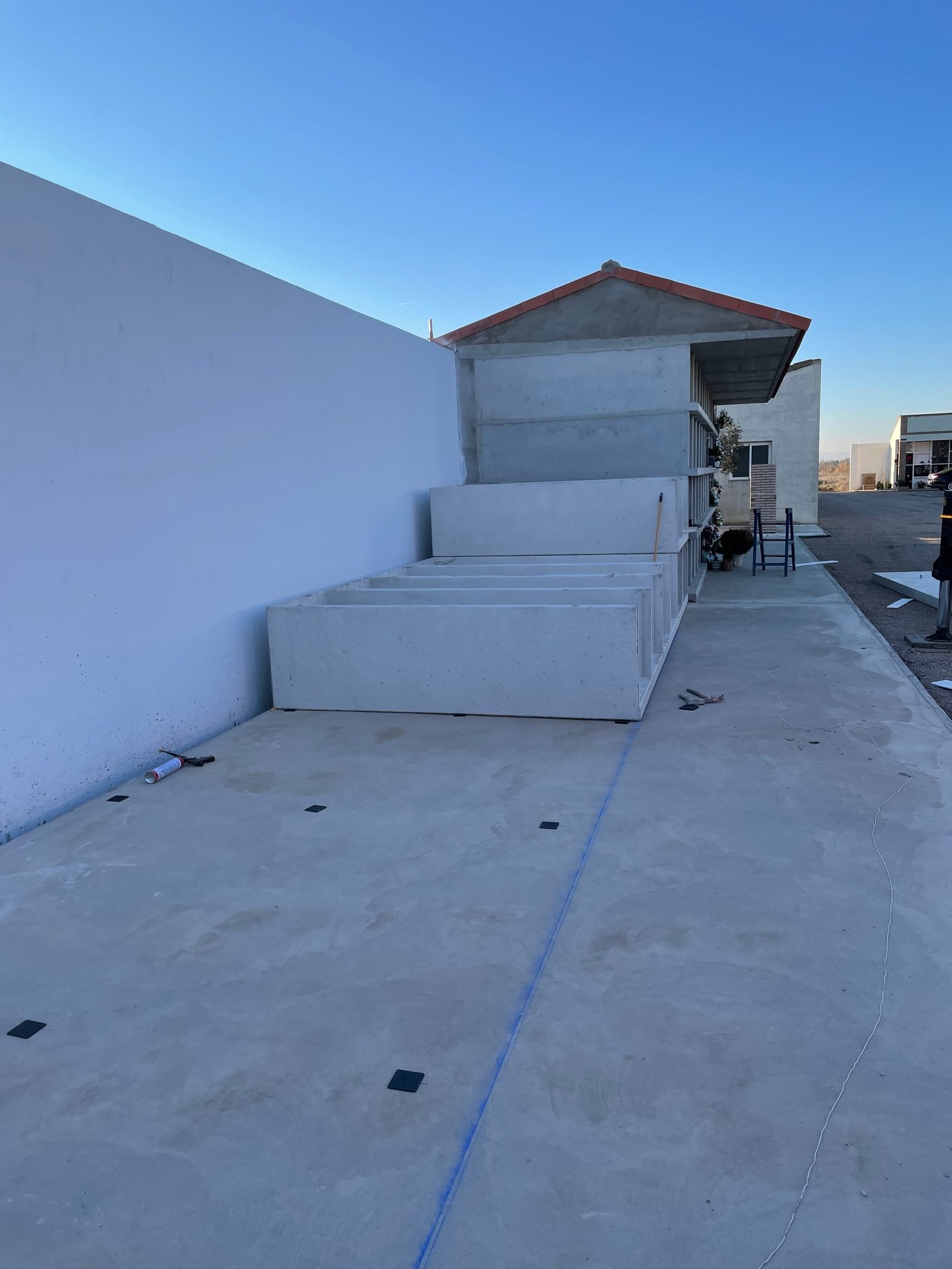 La ampliación fue de 48 Nichos Prefabricados de Hormigón “Sin Repisa” colocados a 4 alturas y terminado con losa de cubierta con el mismo vuelo del módulo anterior para así mantener su estética.