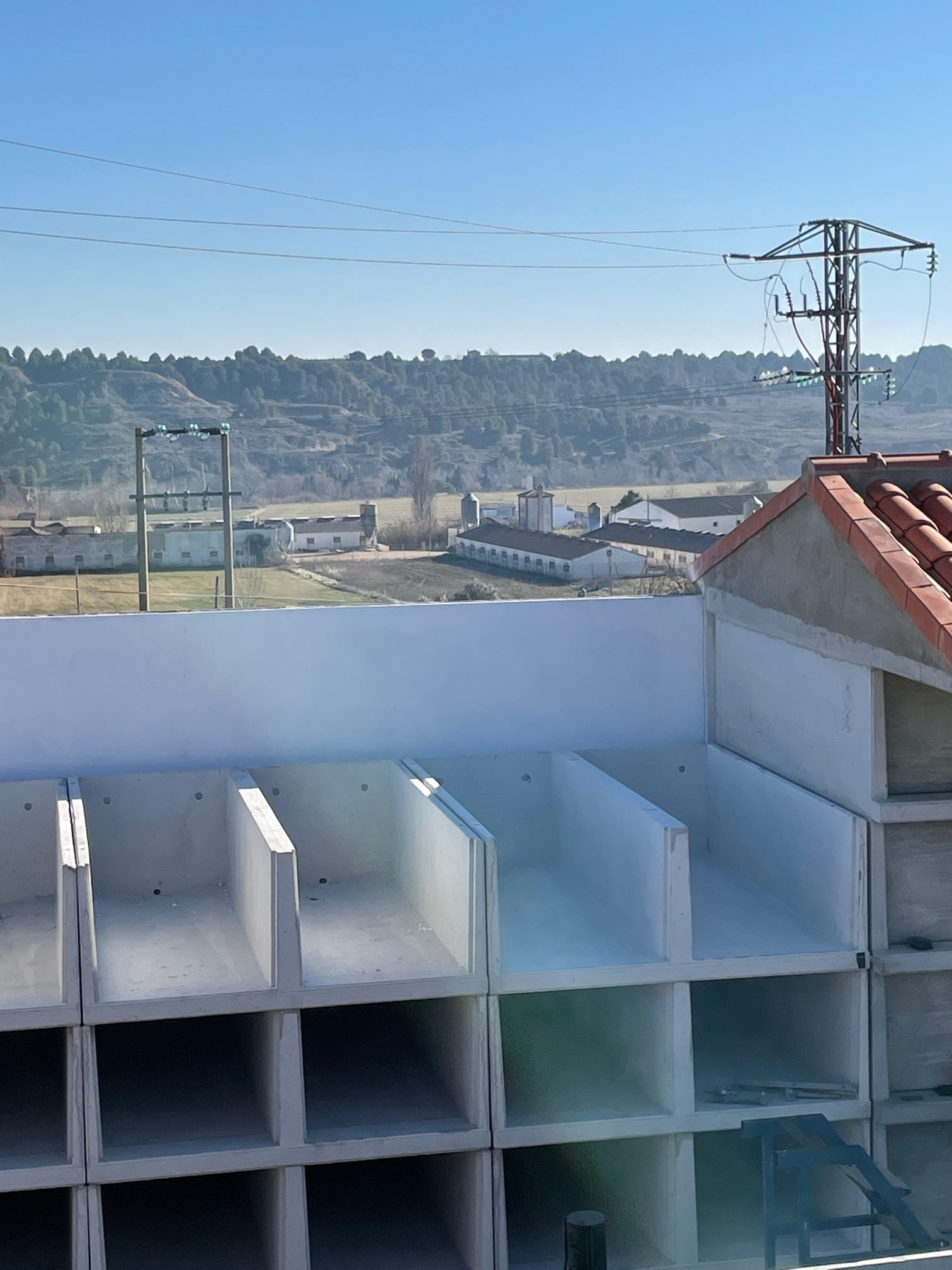 La Constructora Albas Tierz nos dejó construida la solera de hormigón para el asiento de los prefabricados y posteriormente sobre nuestra losa de hormigón prefabricada corono con tejado de teja de hormigón