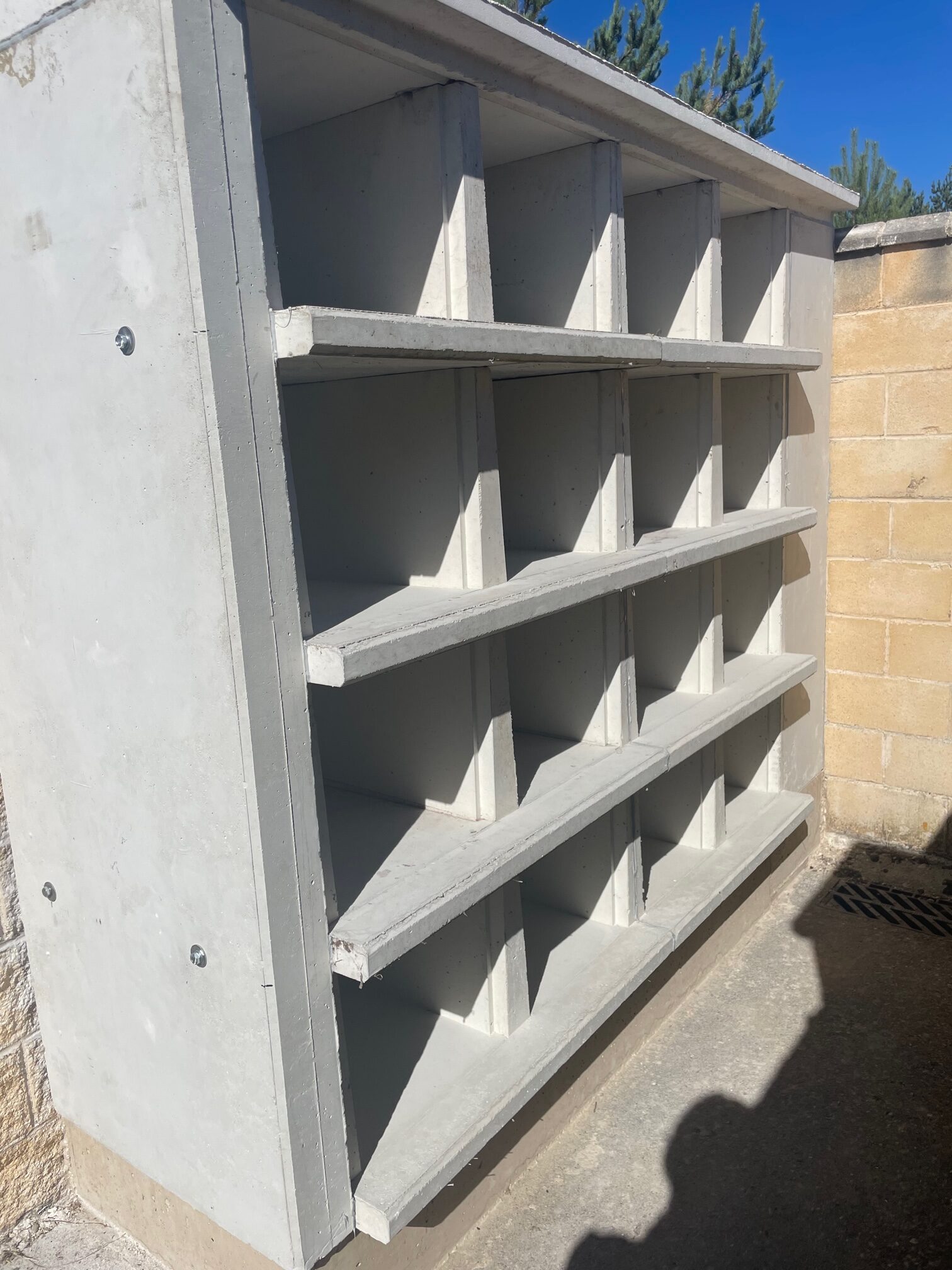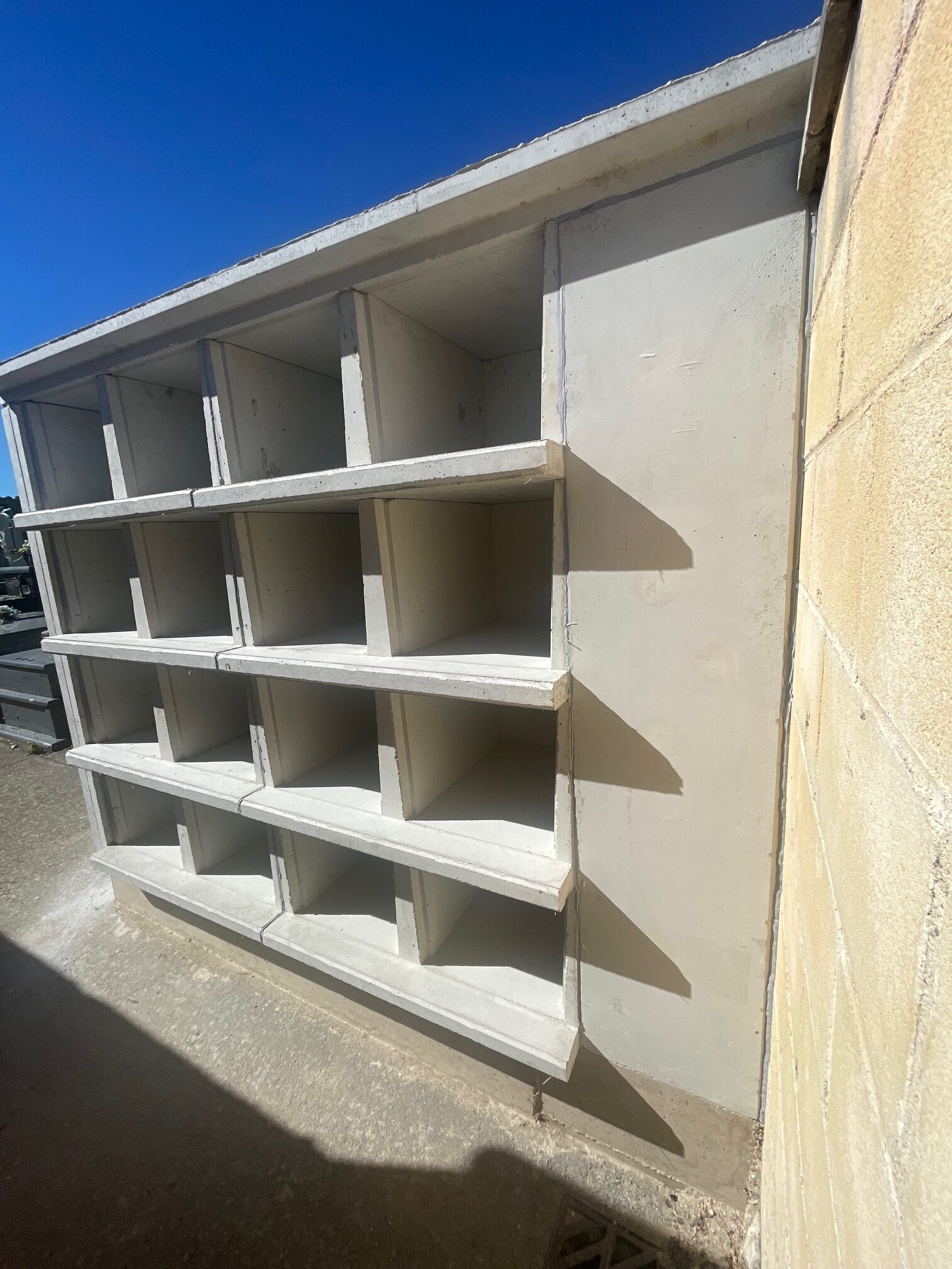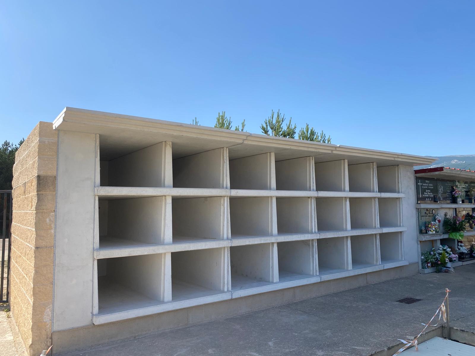 En esta ocasión además de los nichos, losas de cubierta y tapas de cierre fontal hemos suministrado paneles de cerramiento. Paneles de hormigón para cerramiento de hueco contra muro y de  encuentro con el módulo de nichos existentes.
