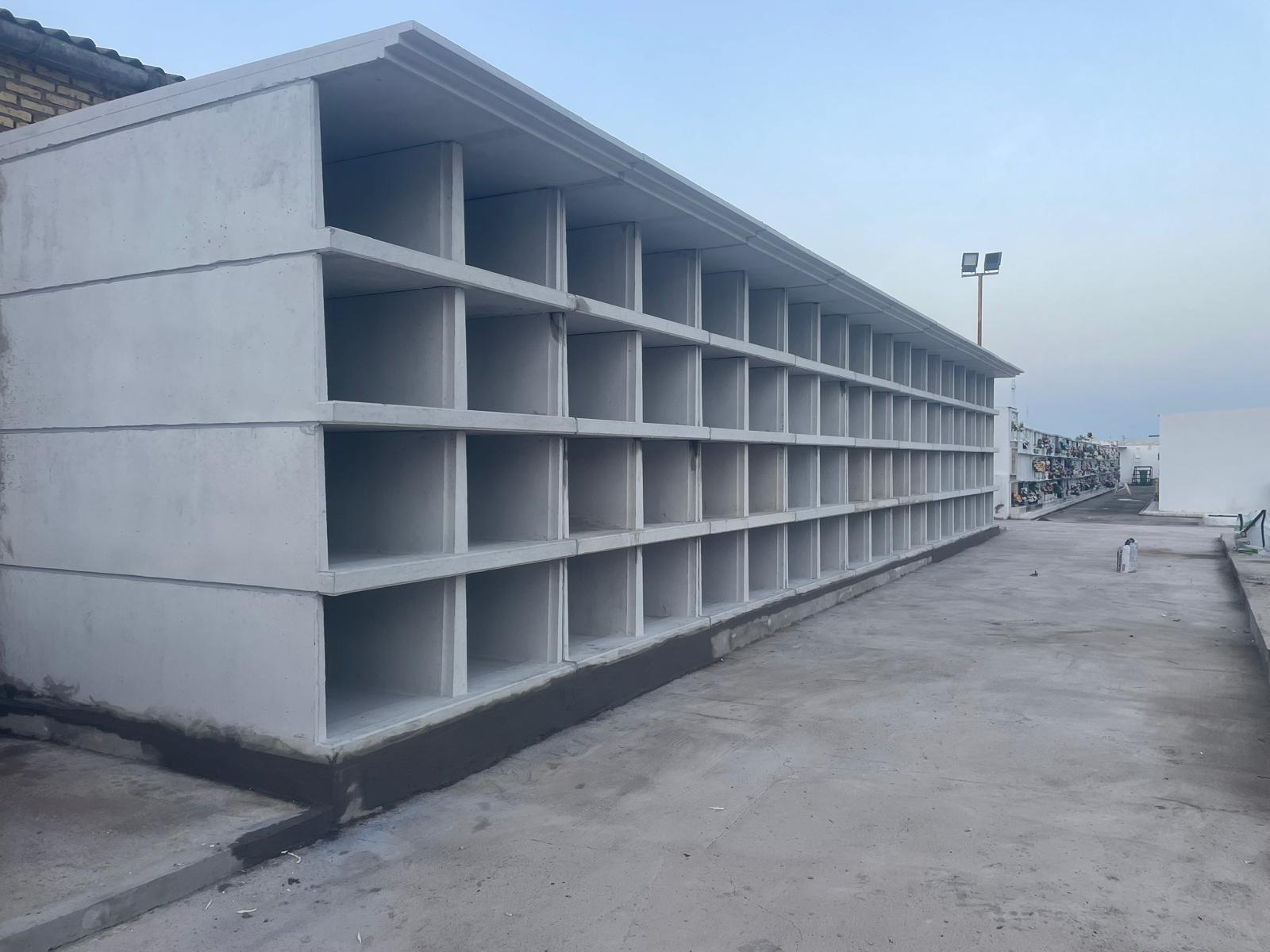 En esta primera fase se han instalado 64 nuevos nichos prefabricados. Un módulo de 16 nichos en la base x 4 alturas.