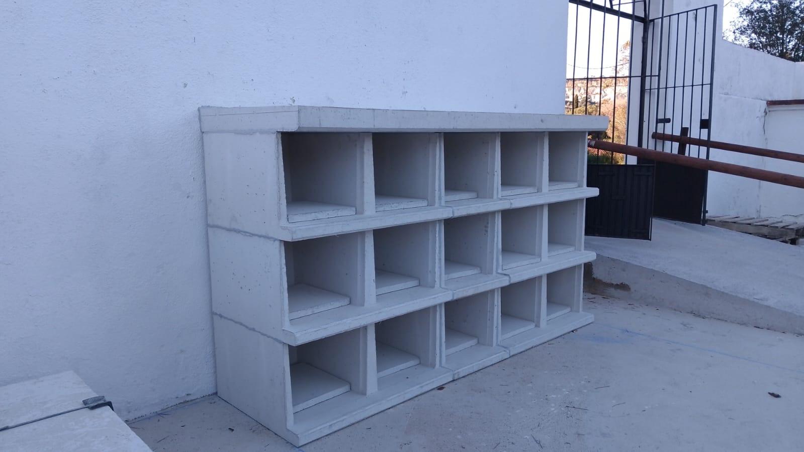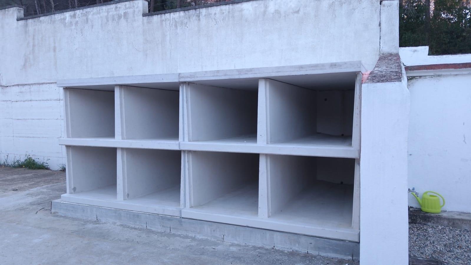 Para mantener la estética de los módulos anteriores y facilitar el acceso a los mismos, se decantaron por instalar los nichos a 2 alturas, nichos de hueco interior 90 cmt como indica la Generalitat, coronados con losa de cubierta cerrando también con esta la cámara posterior de gases y lixiviados.