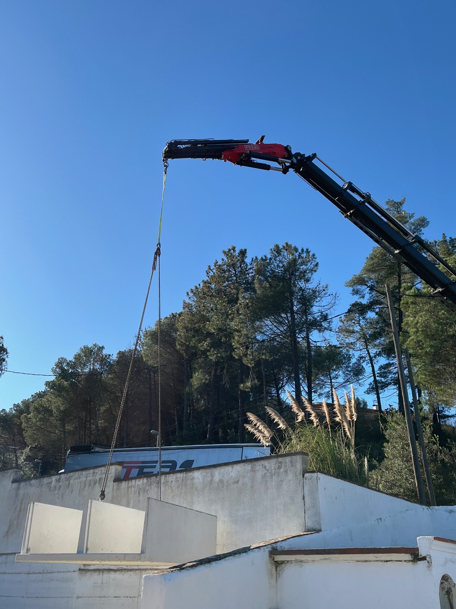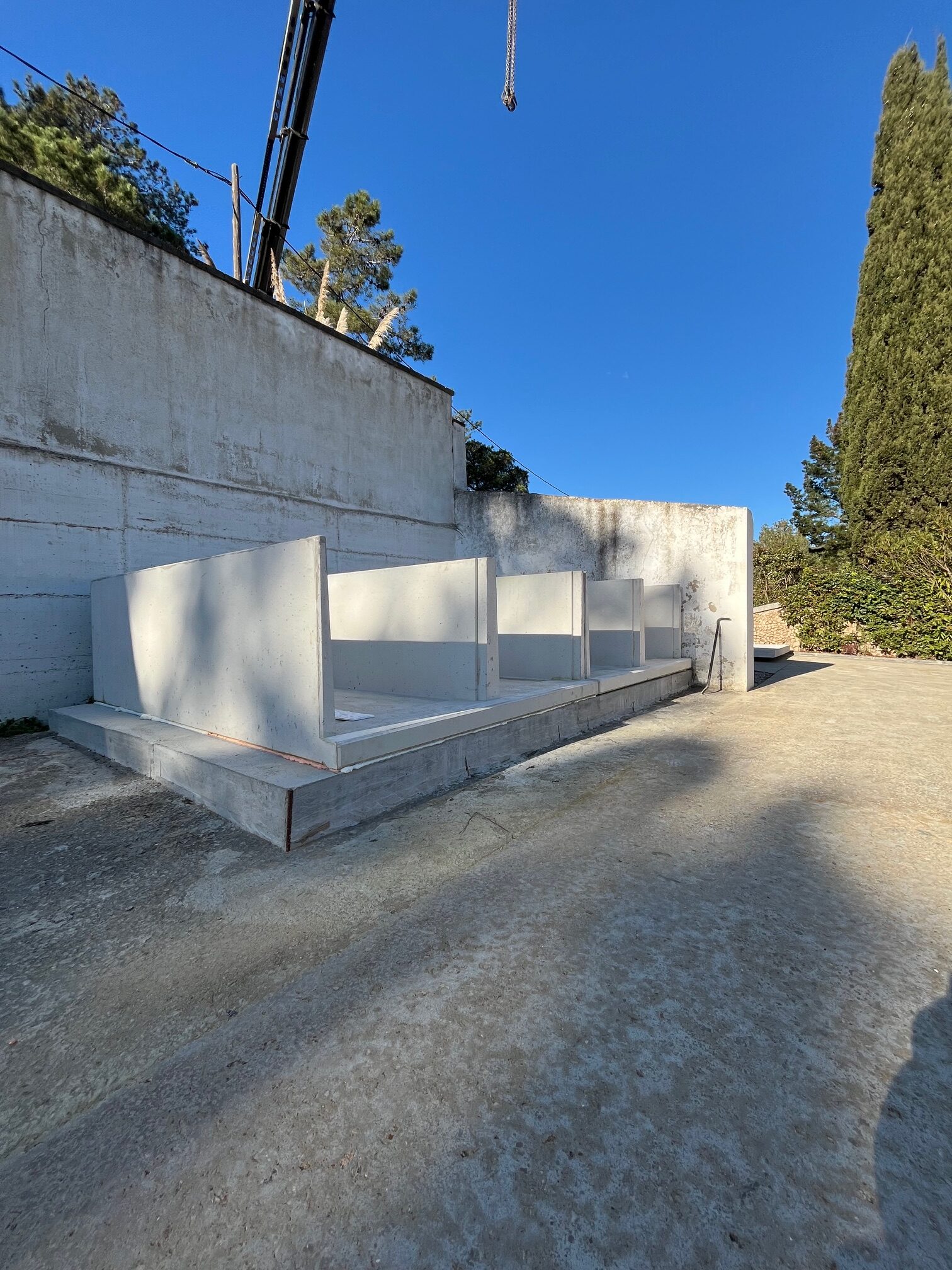 Como podréis comprobar en las imágenes el montaje resultaba un poco complejo ya que había que instalar los prefabricados desde el exterior y además de que había distancia teníamos que salvar los cables de luz…., pero gracias a la profesionalidad de nuestros operarios de montaje y de Gruas Ripotrans el trabajo pudo realizarse